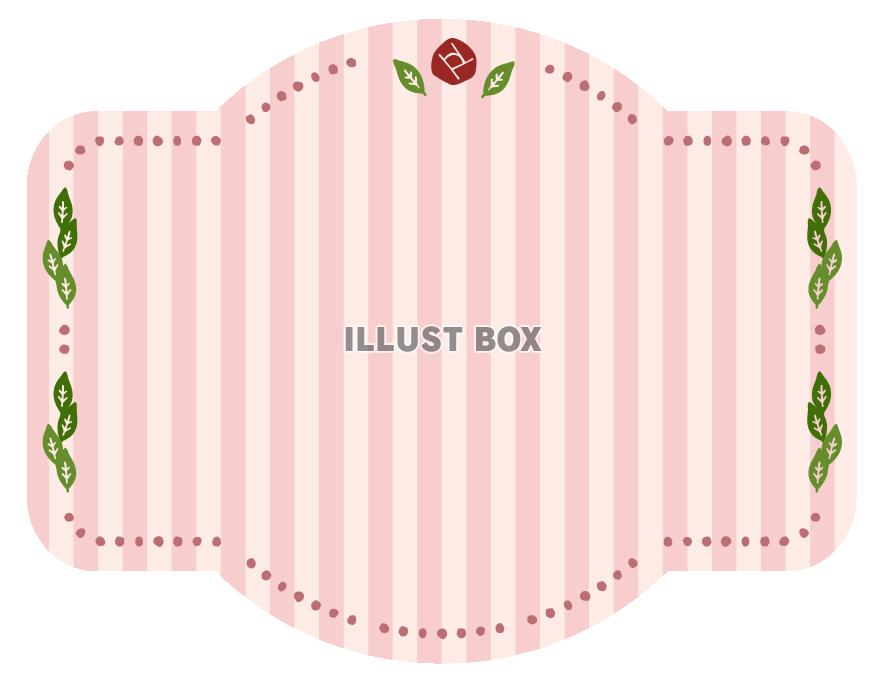 ストライプの背景にバラをあしらった、ラベル風のフレームです。
