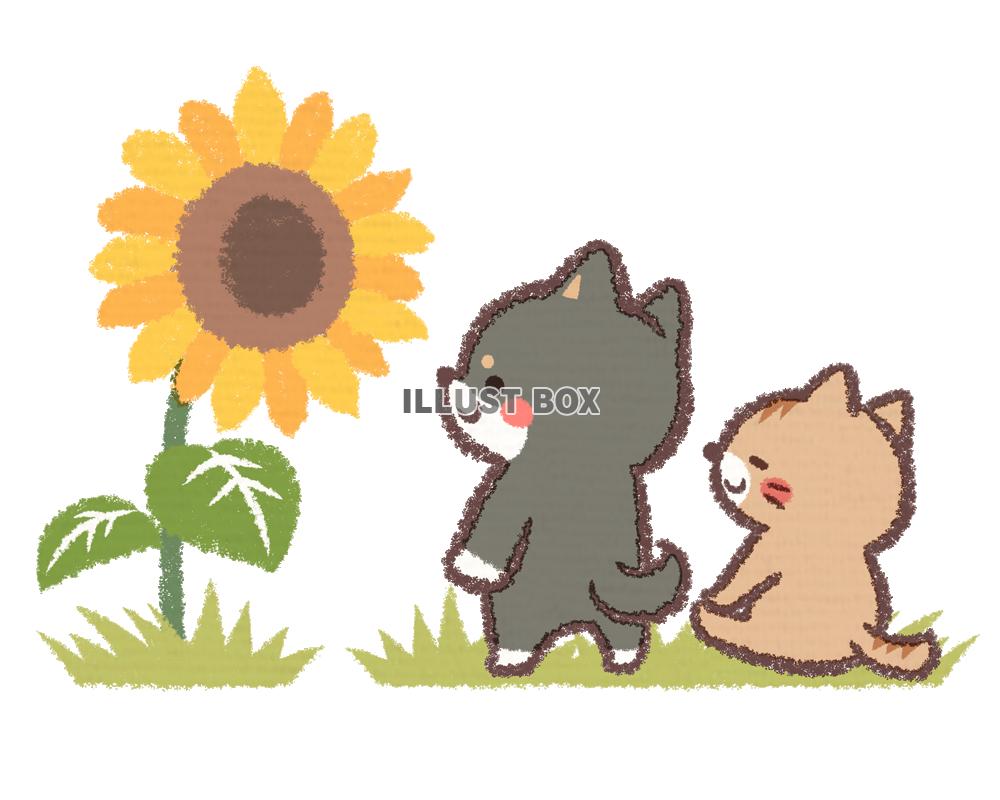 ヒマワリと黒柴イヌネコ