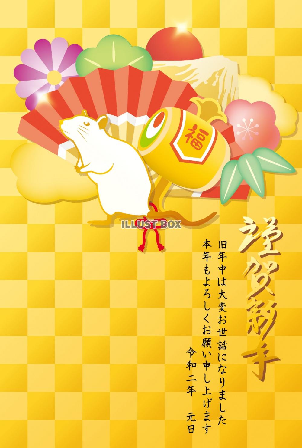 子年 年賀状テンプレート071 (金、豪華絢爛、華やか、富士...