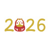 2026 謹賀新年と門松と3匹の馬だるま...