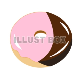 苺チョコのドーナツの半分に、黒いチョコをかけてみました。