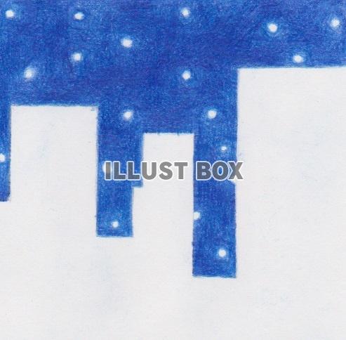 ビル群と夜空のちょっと絵。希にやる色鉛筆のみで描いた作品。使っている色は青系統の色、確か2色だtらと思います。ビルの部分も色を塗るつもりだけど、塗らないで白抜きになった状態のこれも、ありかなーと思い投稿してみました。