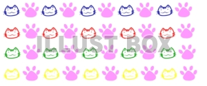 猫と肉球でライン素材を作ってみました。青赤緑黄色と4色あります。単色なのでポップな感じになっていると思います。それぞれカットしても、このままパッケージのようにも使用出来ます。装飾や飾り罫などに使っていただけると嬉しいです。