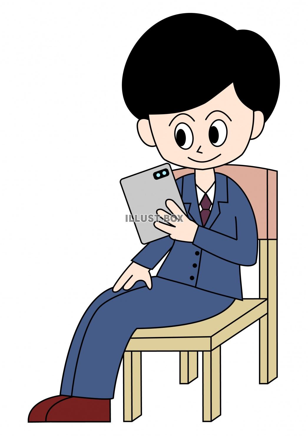 タブレットを持つ男性会社員のイラストです。