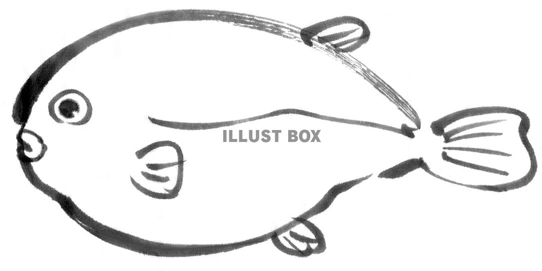 筆絵のフグのイラストです。手描きの筆絵を...
