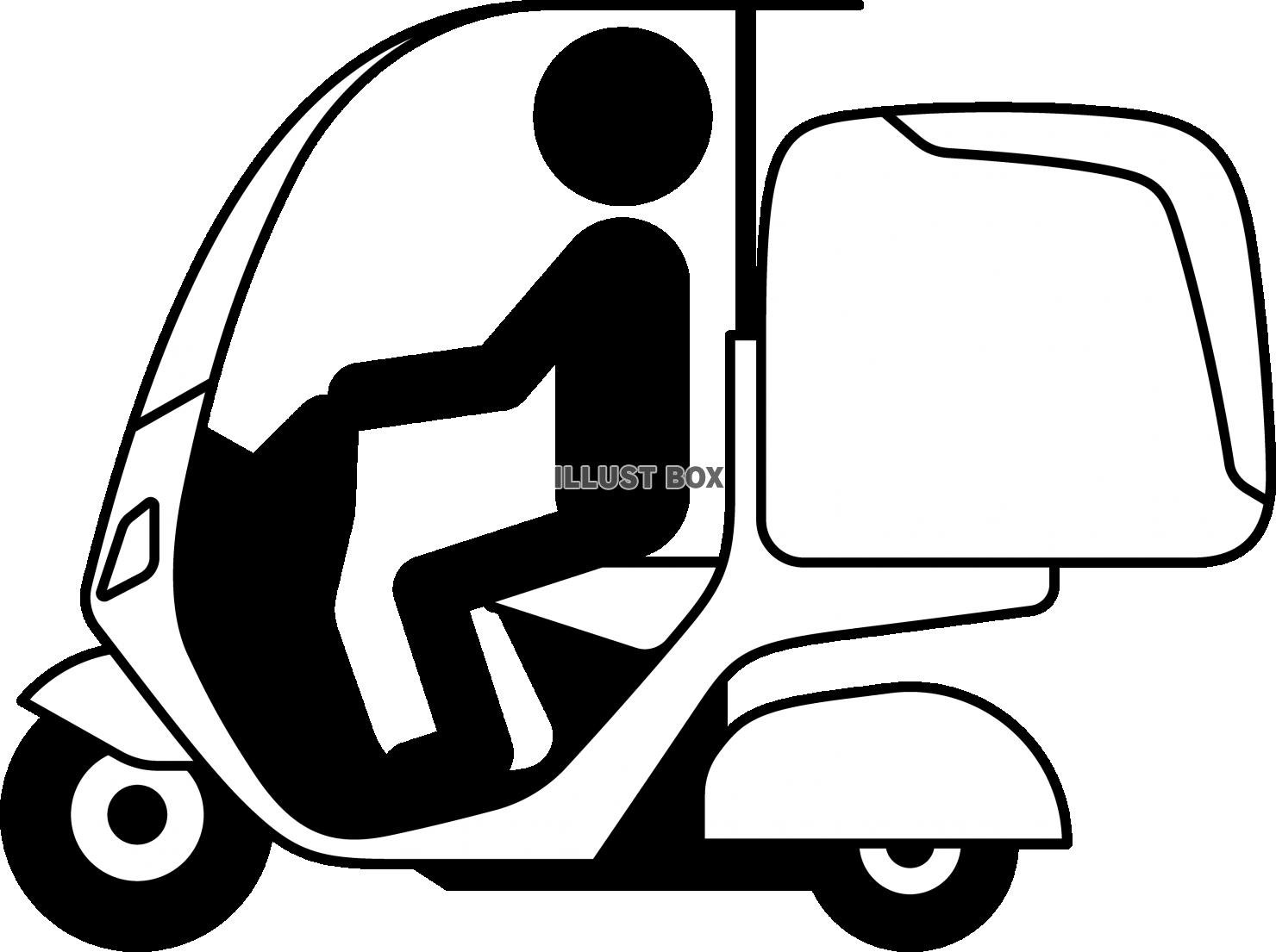 シンプルで使いやすいデリバリーバイクで配達をするスタッフ ピクトグラムのイラストです。