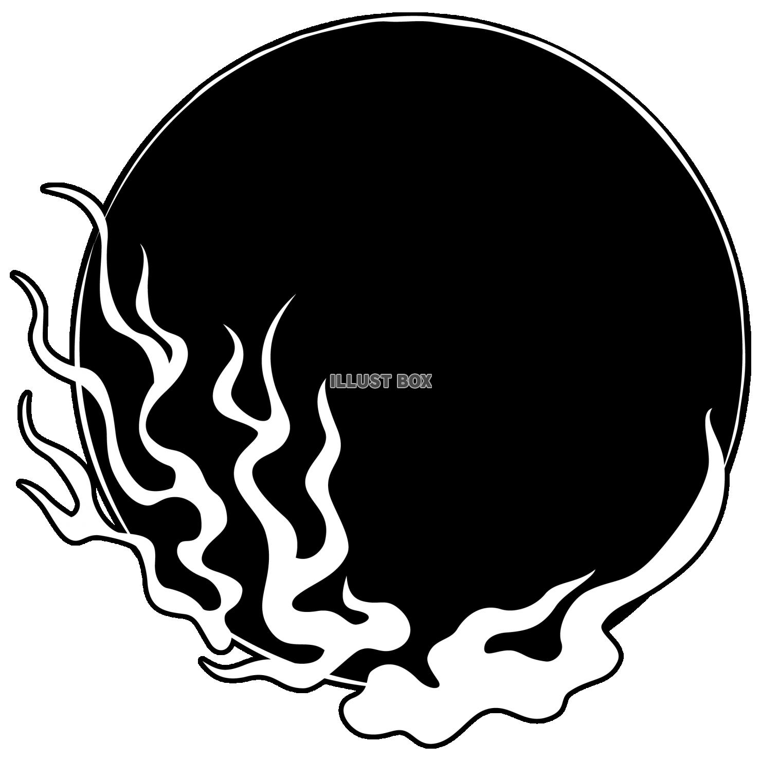 筆描きの和風な炎のフレーム1 黒地に白 [PNG/EPS]