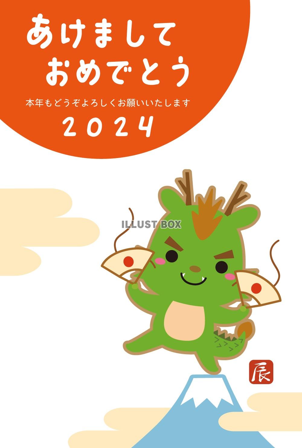 2024年辰と富士山と初日の出の年賀状で...