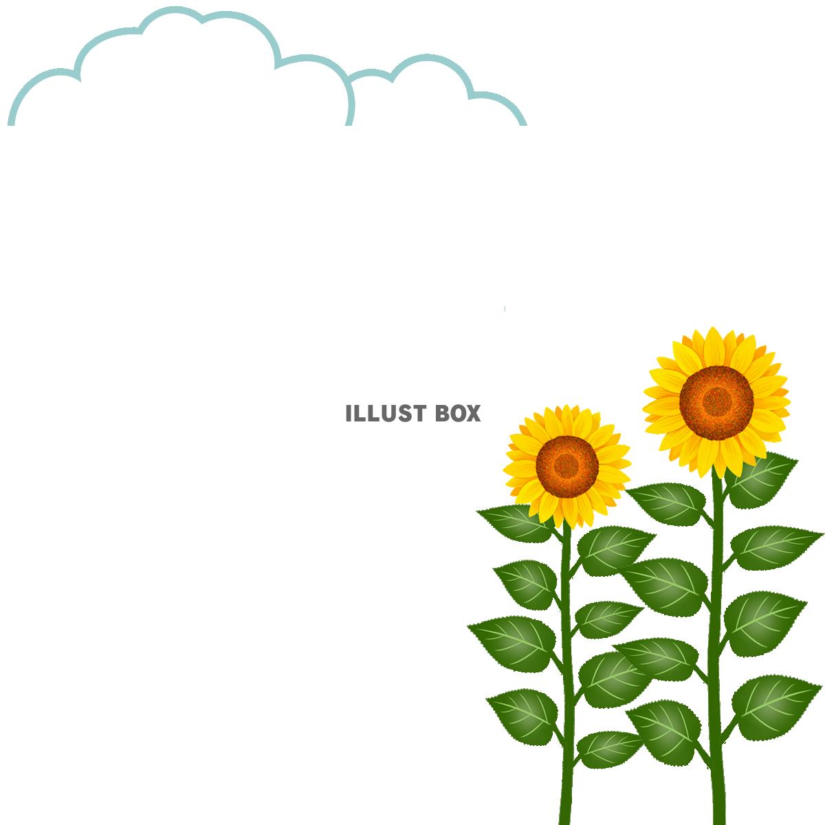 夏を彩るヒマワリ。そんなひまわりをモチーフにしたフレーム素材です。 空の彼方に浮かぶ入道雲と綺麗に咲き誇る向日葵を取り合わせてみました。とてもシンプルなデザインになっております。お洒落で可愛い佇まいの飾り枠イラストです。よろしければご活用ください。