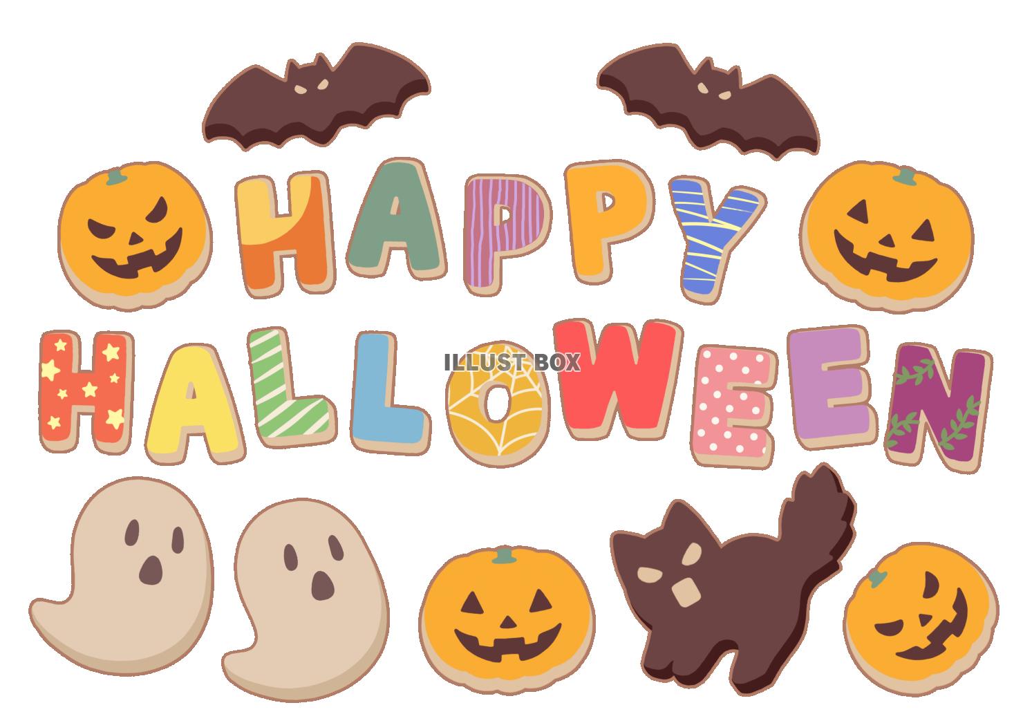 ハロウインのモチーフと、アルファベットのクッキーのイラストです。