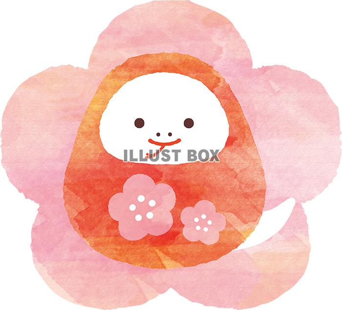 年賀ヘビダルマ梅ワンポイントイラスト