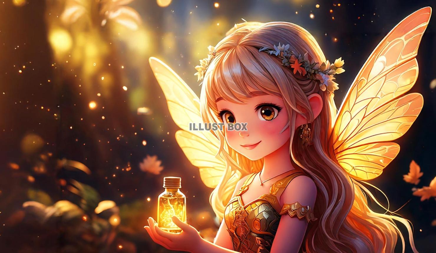 光小瓶を持った可愛い妖精の女の子