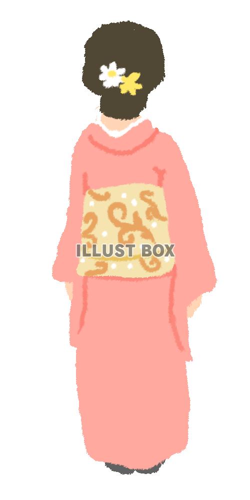 ピンクの着物を着た後ろ姿の女性(透過png)