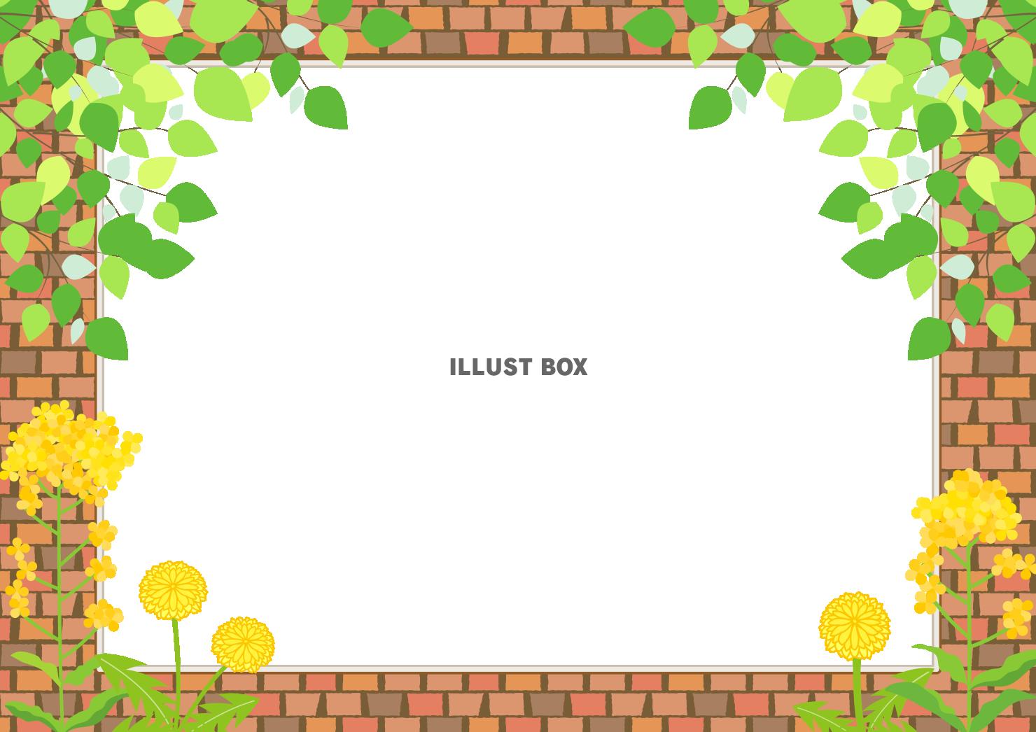 草花とレンガの春フォトフレーム横