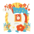 - 2025年(令和7年)10月のイラスト付きカレンダーです。A4比率の透過PNGデータ...