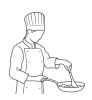 フライパンを持って料理す...