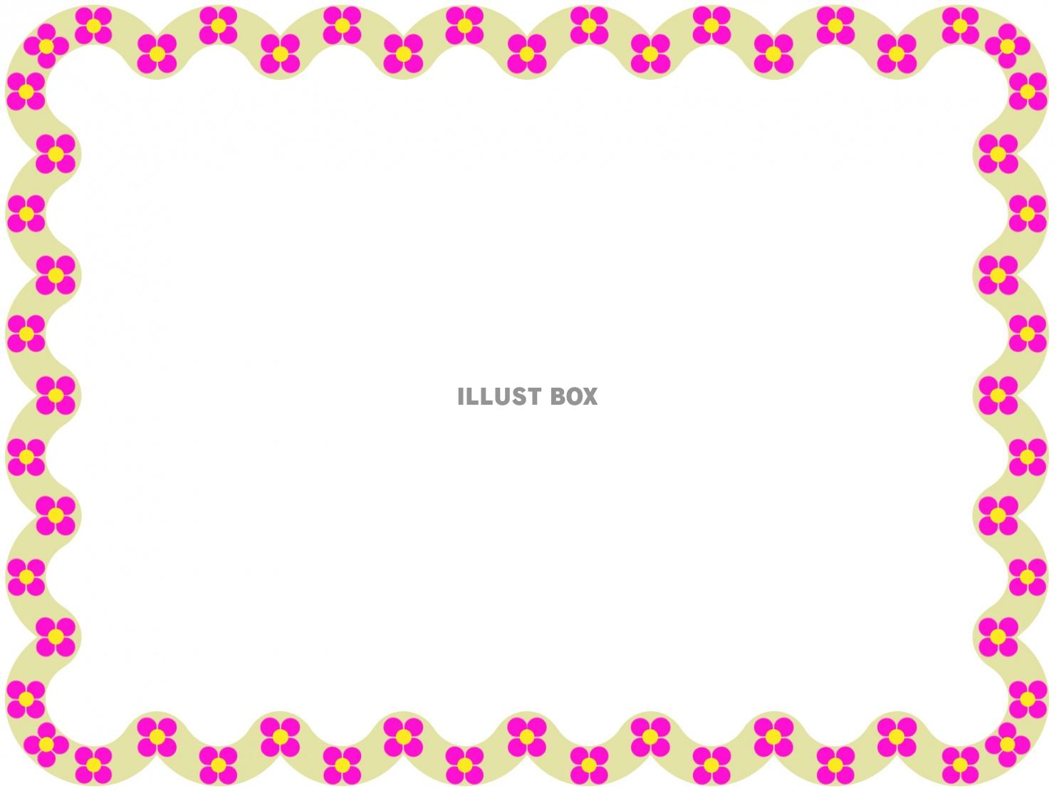 花模様のフレームです。かわいい花模様を波型のライン上に配してみました。上下左右対称のシンメトリーの飾り枠です。シンプルですっきりとしています。波型と花模様の相性もよく行儀よく並べられて上品な雰囲気を醸し出しています