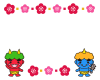 - 節分に使えるかわいいイラストです。赤鬼とおたふく(おかめ)、豆、恵方巻きが描かれてい...